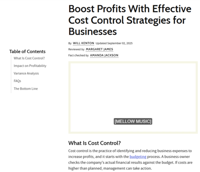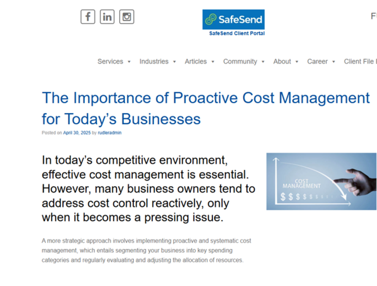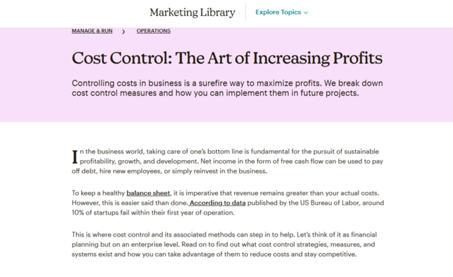 The healthiest, most profitable companies strive to increase sales but they concentrate on controling costs too. Here are multiple professional organizations endorsing cost control -