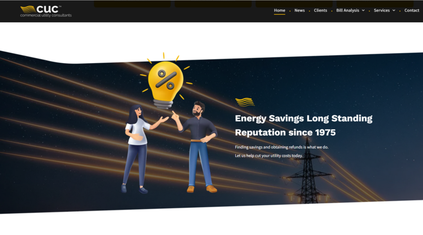 Our partnership with Commercial Utility Consultants puts us in a perfect position to help YOU and your company save money on your utilities. CUC has been doing it since 1975 and has over 10,000 commercial clients across America. Get your bills analyzed for FREE and learn what options may be available to you. CUC never recommends spending money on new equipment - they just look at rates, riders, tariffs and other factors that affect what you pay for what you use.